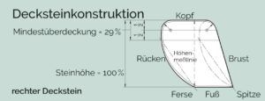 Bei der Verwendung von Decksteinen in scharfem Hieb beträgt die Höhenüberdeckung 29 % der Steinhöhe, die Seitenüberdeckung ca. 38 % der Steinhöhe bis zu einer Mindestüberdeckung von 50 mm (Dach).