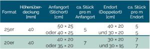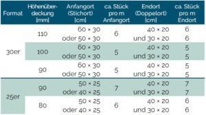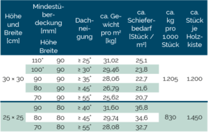 * Die Überdeckungen gelten für den Normalfall (Sparrenlänge, Lage des Gebäudes, örtliche klimatische Gegebenheiten).