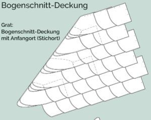 Bei Ort-, Grat-, und Kehldeckungen ist die Fachregel für Dachdeckungen mit Schiefer zu beachten.