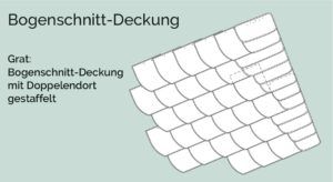 Die Bogenschnitt-Deckung harmoniert mit jedem Baustil und fast jedem Bau-Etat. Durch die spezielle quadratische Grundform der Decksteine und die rationelle Verlegung ist die Bogenschnitt-Deckung besonders wirtschaftlich.