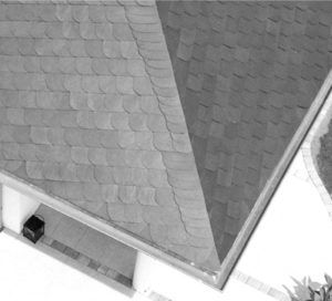die Dachfläche eingedeckt. Als Schieferformate sind ungelochte Bogenschnitt-/