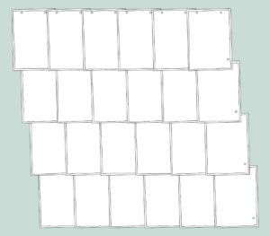 Die Geschlaufte Deckung erfolgt mit rechteckigen Schiefern, die im Hochformat angeordnet und mit seitlichem Versatz der senkrechten Steinkante eingedeckt werden.