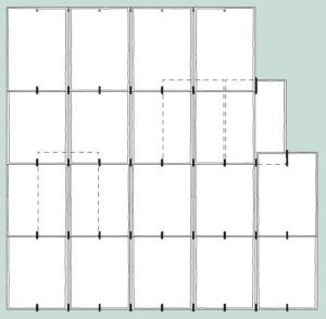 Die Lineare Rechteck-Deckung erzeugt ein streng geometrisches Gesamtbild und betont moderne Gebäude in ihrer klaren Gestaltung.