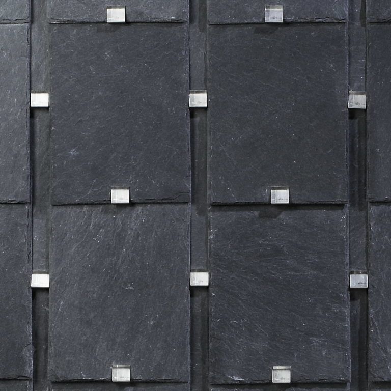 Die Befestigung der Schiefer erfolgt mit einer Klammer aus nicht rostendem Stahl, Werkstoff-Nr. 1 .4571, am Fußbereich sowie 2 korrosionsgeschützten Schiefernägeln oder -stiften bzw. DrillSklent-Schrauben im Kopfbereich. Somit besitzt jeder Stein, unabhängig vom Format, mind. 3 Befestigungspunkte.