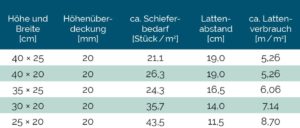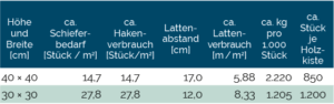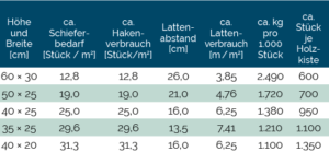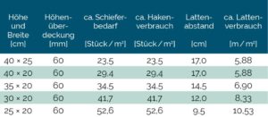 Jeder Schiefer ist mit mindestens 2 Schiefernägeln oder -stiften bzw. DrillSklent-Schrauben bzw. einem Klammerhaken / Einschlaghaken bei Deckung auf Lattung zu befestigen.