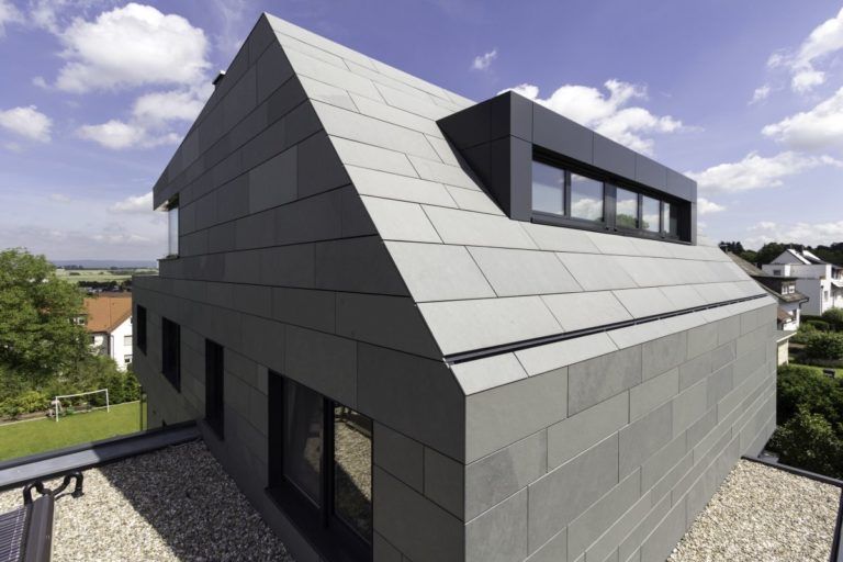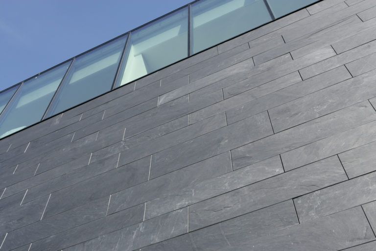 The dynamic cladding is a cladding method developed specially for modern architecture. Its non-uniform covering artwork reminds of the optics of rubble masonry and develops perfectly the true-borne natural power of natural slate.