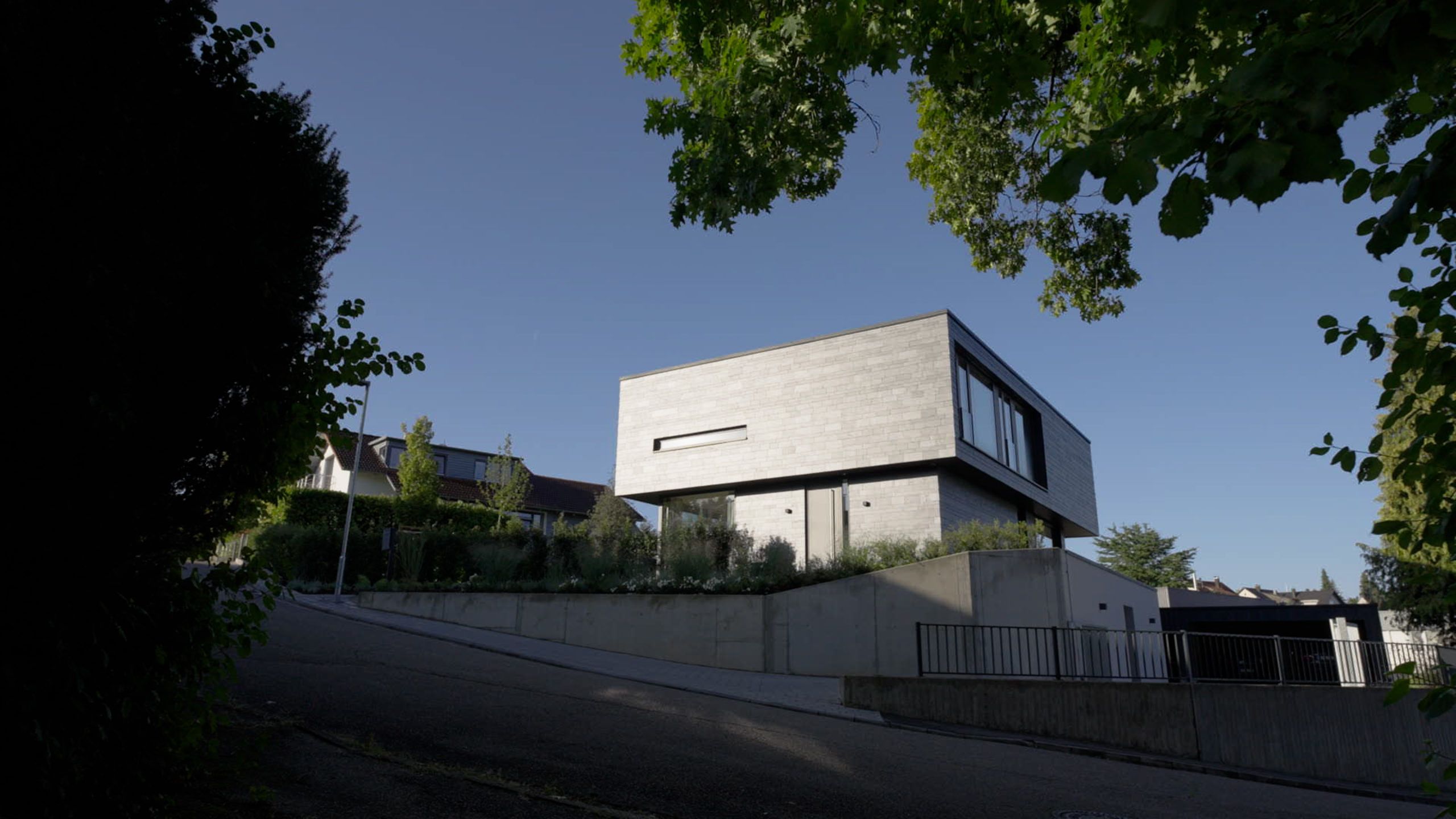 Ursprünglich hatten die Bauherren Julius und Helen Ohlenbusch geplant, das auf dem Eckgrundstück vorhandene Einfamilienhaus aus den 1950er-Jahren umfassend zu modernisieren. Doch schnell wurde den beiden klar, dass sie damit große Kompromisse bei Raumqualität, Statik und Energieeffizienz hätten eingehen müssen. Architekt Andreas Schoch vom beauftragten Büro architectoo schlug daraufhin einen vollständigen Neubau vor: „Durch den Abriss konnten wir die Grundstückssituation optimal nutzen und einen modernen Neubau entwickeln, der Nachhaltigkeit, großzügige Raumwirkung und weite Panorama-Aussichten optimal vereint.“