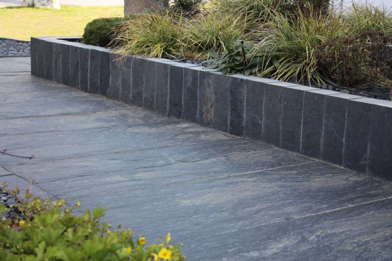 Die schnörkellosen, kubischen Bauten prägen edle blaugraue Fassaden aus InterSIN-Schiefer von Rathscheck.
